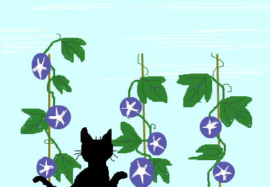 朝顔猫さん。じーって見てると、蔓に絡まれてしまうよ…。あ。蔓にじゃれたいのか。きっとそーだ(笑)