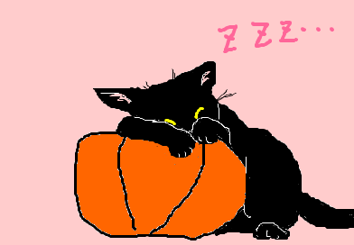 カボチャに抱きついて寝てる黒猫ちゃんの、