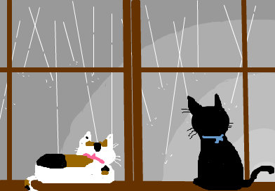 ほんとに、「雨だね」「そーだね」って会話が聞こえてきそうです。猫の後ろ姿って、ドラマを感じますね♪