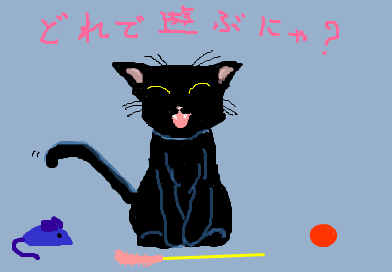 黒猫さん、モアイネコと猫じゃらしで遊んでくれるかな?